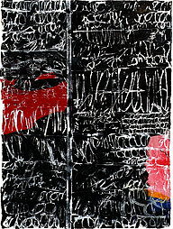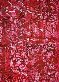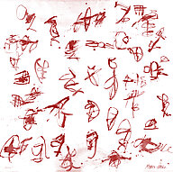 Ihre Malerei traf dann zu Beginn der 2000er mein Inneres. Nochmal später realisierte ich, dass ihre Zeichen und Schriften, die ihre Bilder erzählend unterstrichen, ihren Weg in meinen Tanz fanden. Es war eine schöne Entdeckung und ich arbeitete bewußter damit. Mein sowieso schon markantes Handspiel beim Tanzen erfuhr eine immer größere Dringlichkeit, die sich über Zartheit, aber auch Verkrampfungen äußerte. Jetzt schreibe ich bewußt Zeichen in die Luft, auch auf Böden oder Wände hinterlasse ich sie. Im Gegensatz zu Mona's Zeichen verschwinden meine im Moment ihres Entstehens.