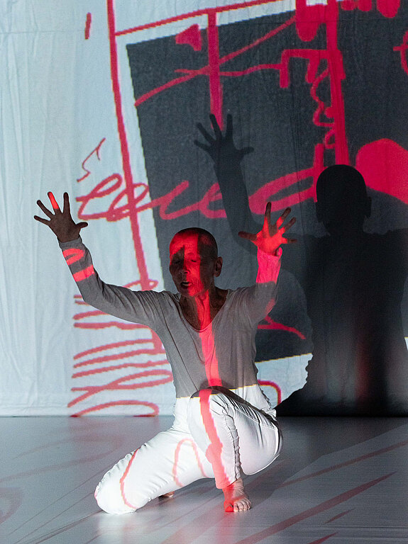 Neue Bilder werden durch das Verschmelzen von Malerei, Körper, Musik und Licht im Raum sichtbar. In der Veränderung liegt auch das Verschwinden im Entstehen von Neuem.
