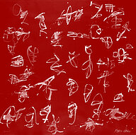 Ihre Malerei traf dann zu Beginn der 2000er mein Inneres. Nochmal später realisierte ich, dass ihre Zeichen und Schriften, die ihre Bilder erzählend unterstrichen, ihren Weg in meinen Tanz fanden. Es war eine schöne Entdeckung und ich arbeitete bewußter damit. Mein sowieso schon markantes Handspiel beim Tanzen erfuhr eine immer größere Dringlichkeit, die sich über Zartheit, aber auch Verkrampfungen äußerte. Jetzt schreibe ich bewußt Zeichen in die Luft, auch auf Böden oder Wände hinterlasse ich sie. Im Gegensatz zu Mona's Zeichen verschwinden meine im Moment ihres Entstehens.
